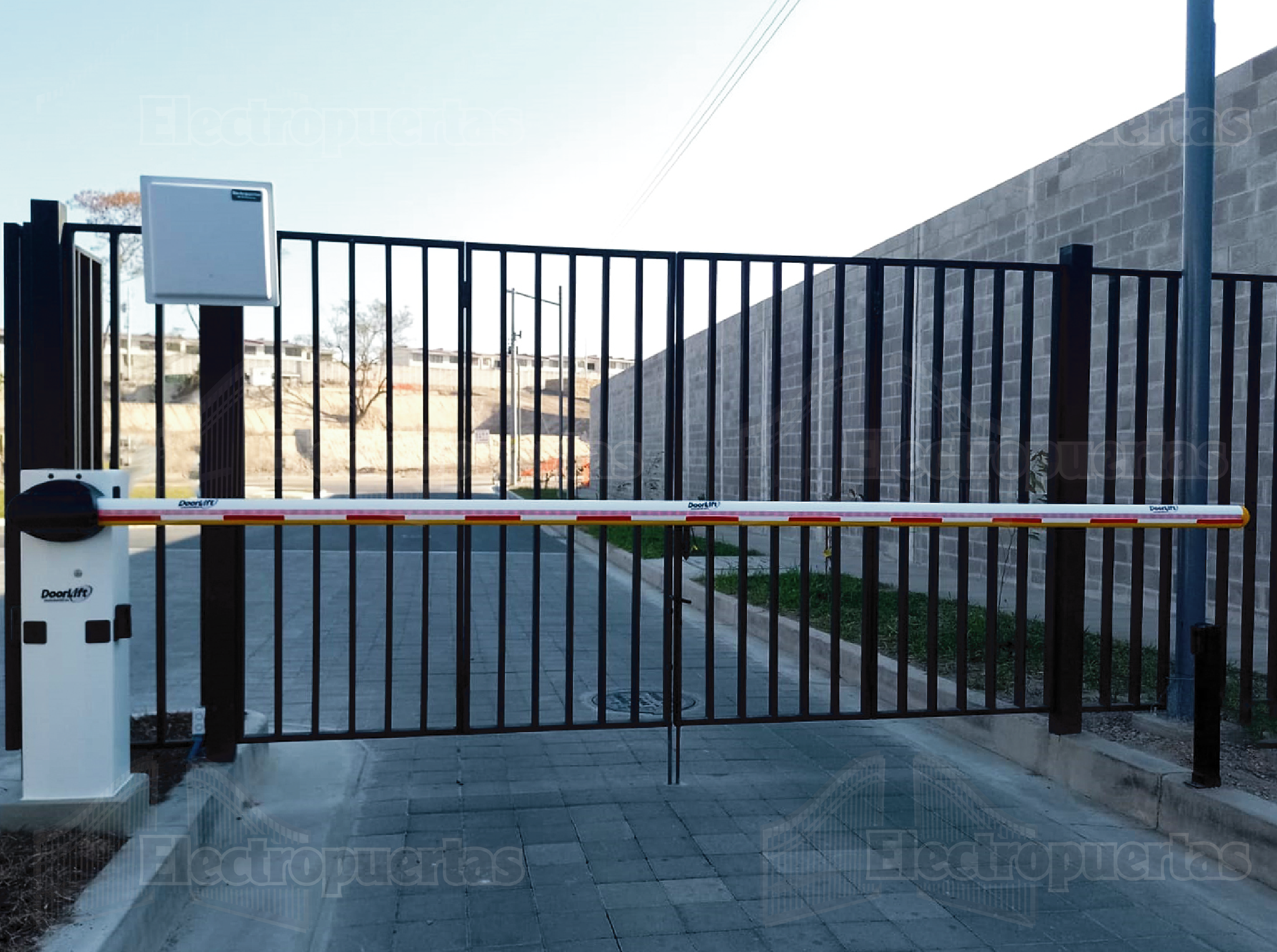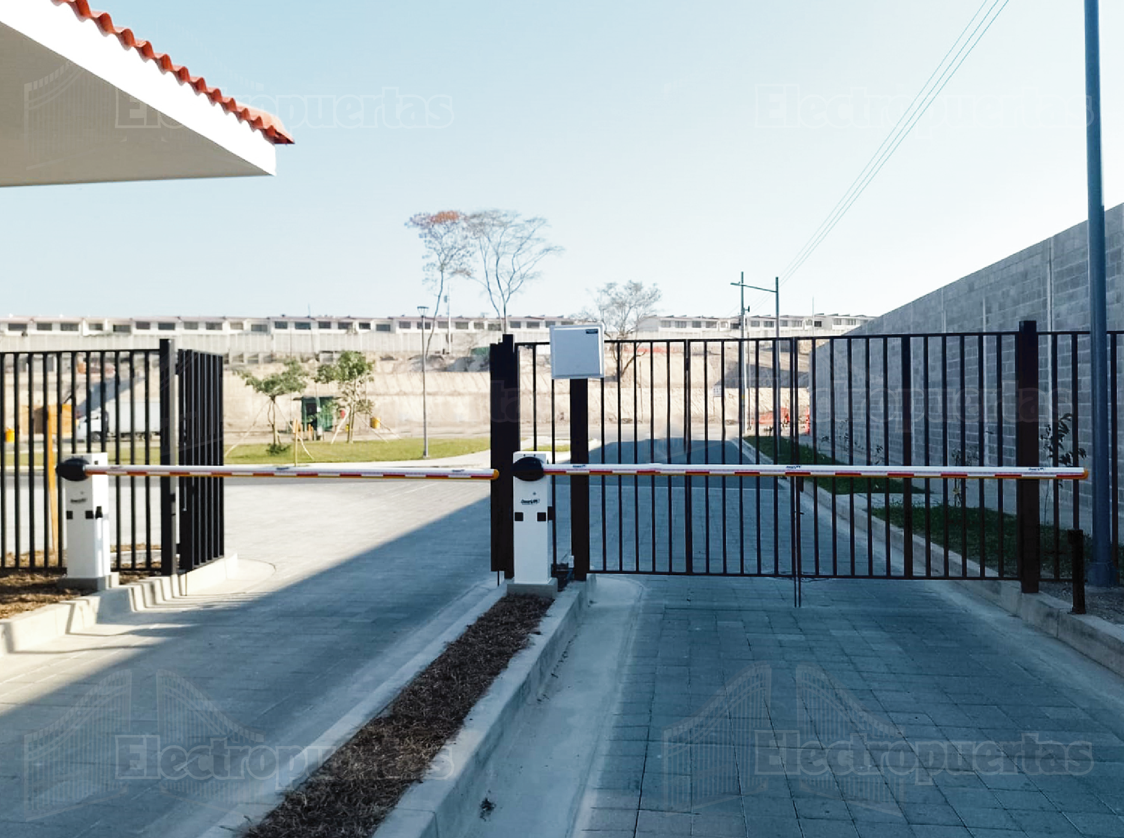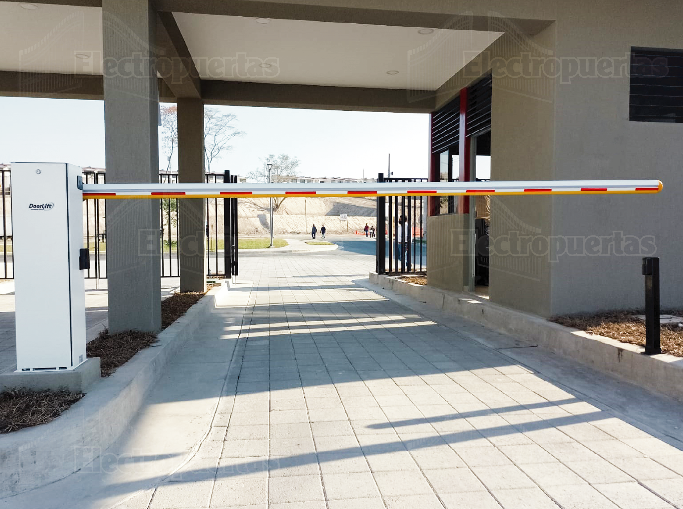 Barreras de acceso vehicular electromecánica con estructura de acero galvanizado para apertura y cierre de hasta 5 segundos. Para astas redondas de hasta 6 m.